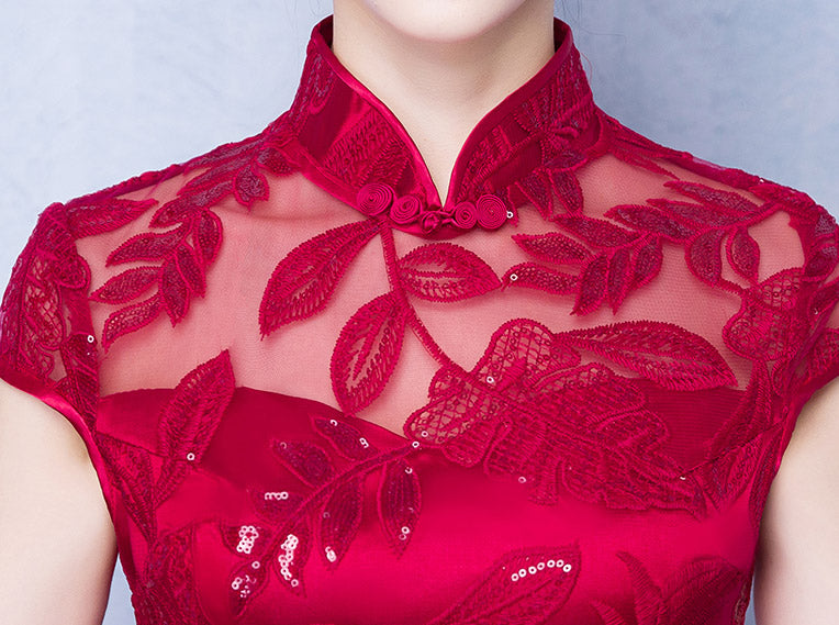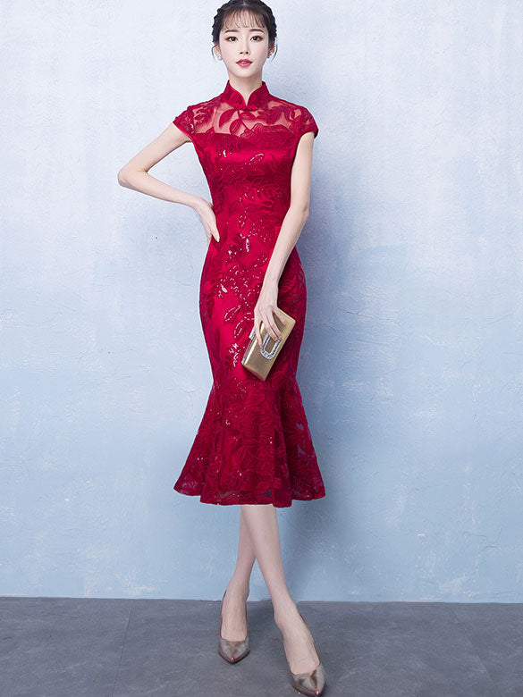 Sequins Lace Fishtail Qipao / Cheongsam Wedding Dress