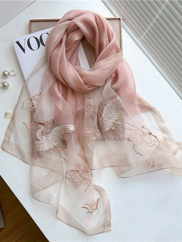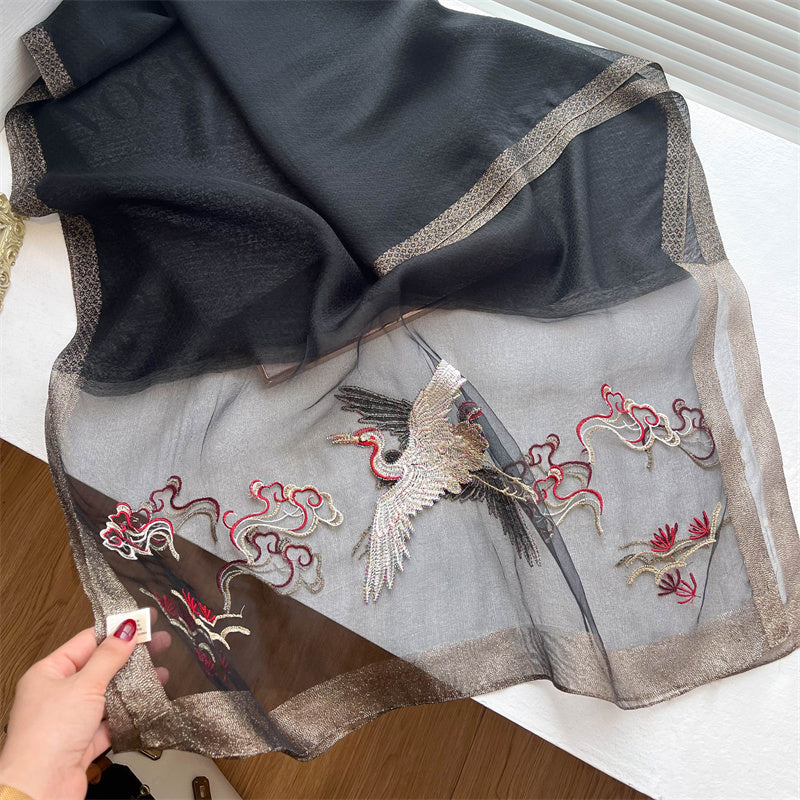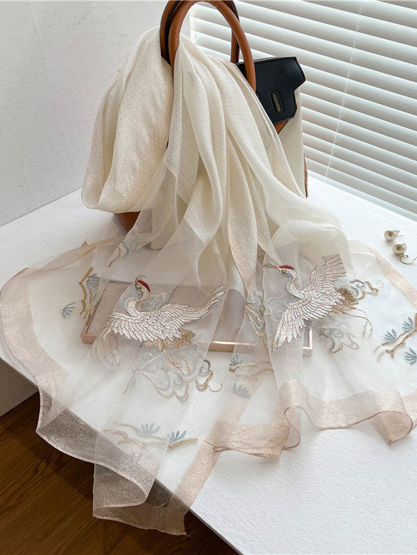 Lightweight scarf with delicate embroidery is perfect for daily wear and work.