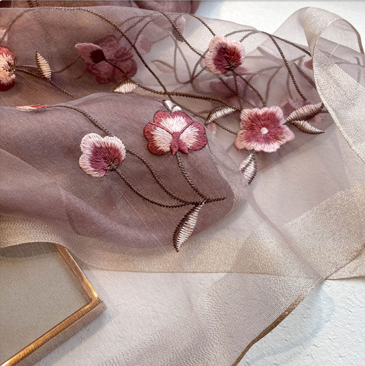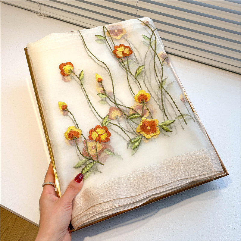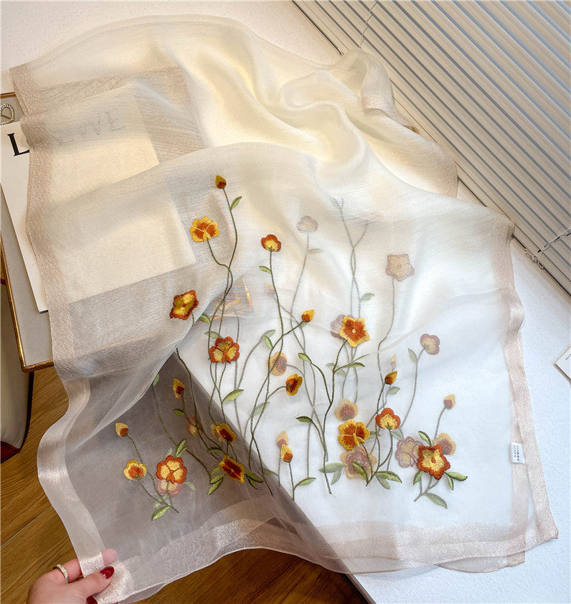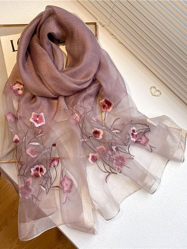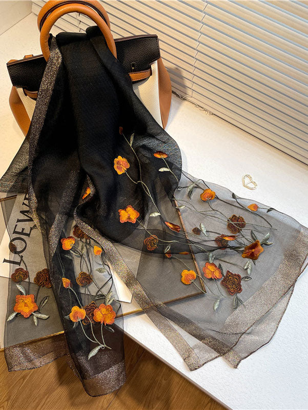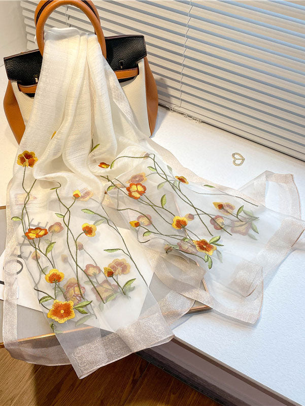 Lightweight scarf with delicate embroidery is perfect for daily wear and work.