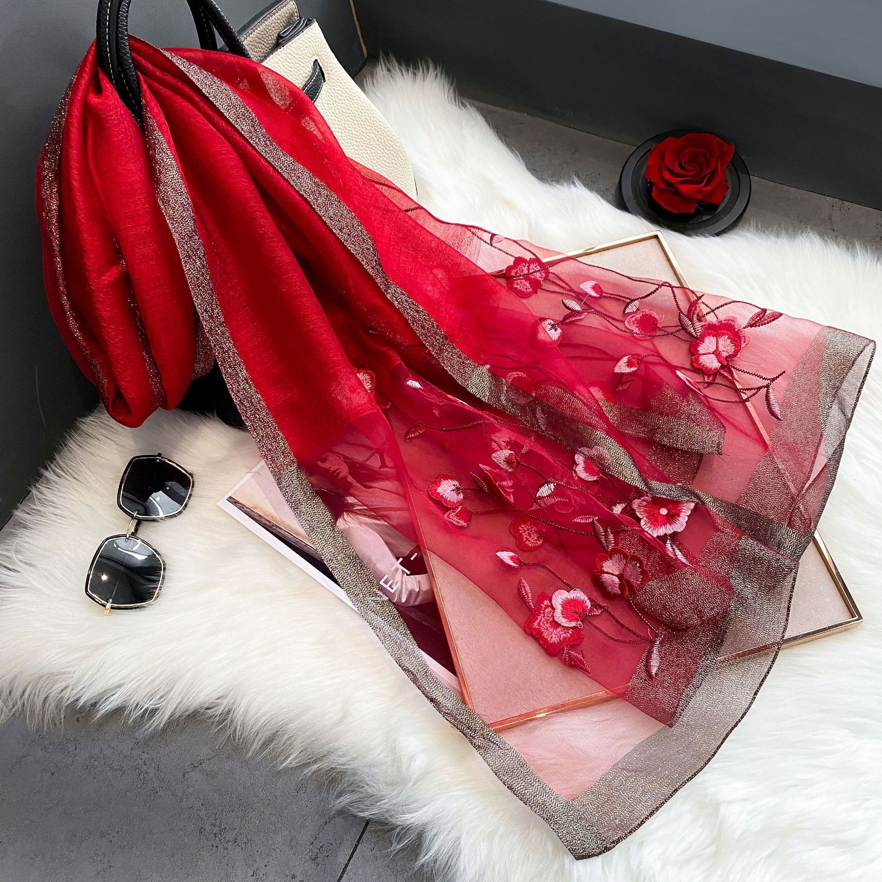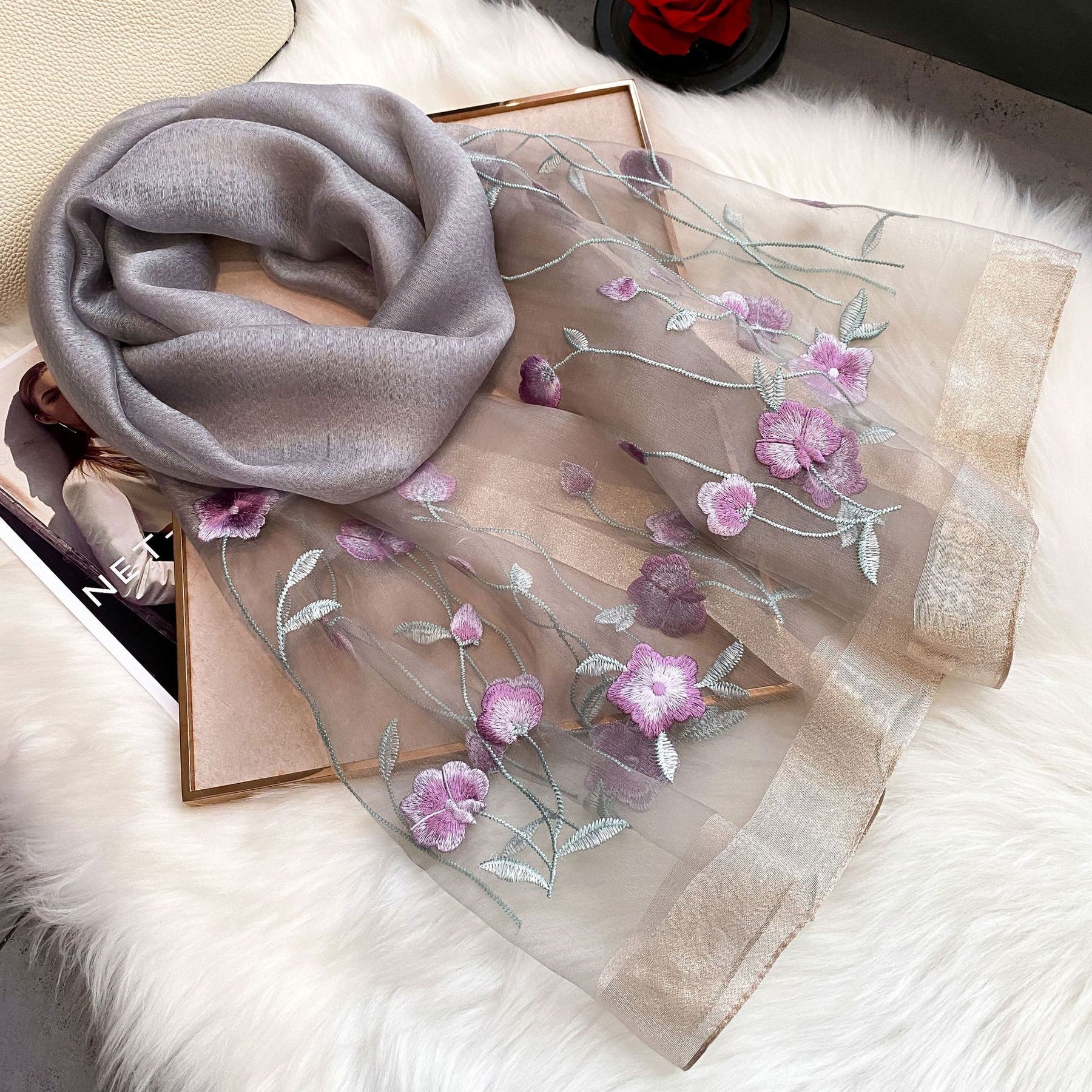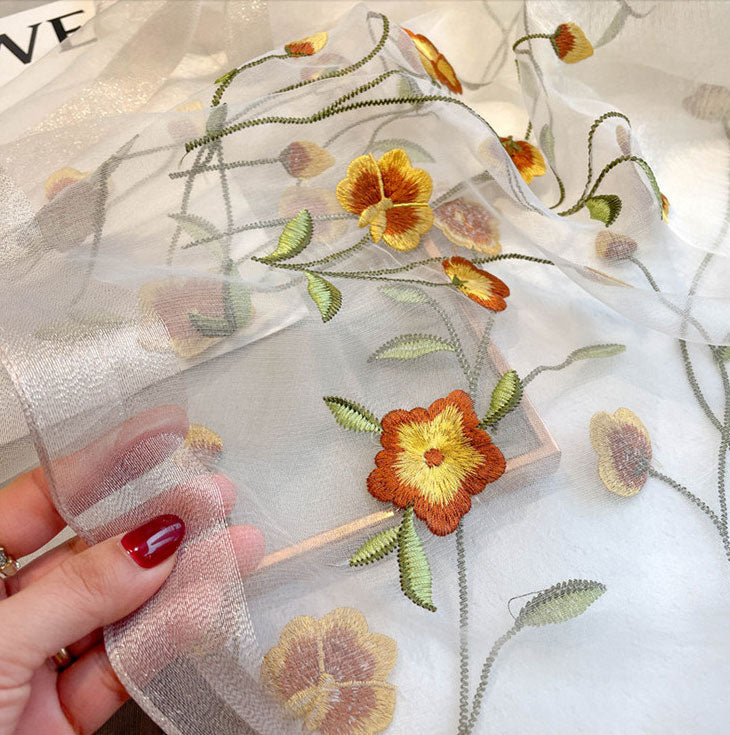 Lightweight scarf with delicate embroidery is perfect for daily wear and work.