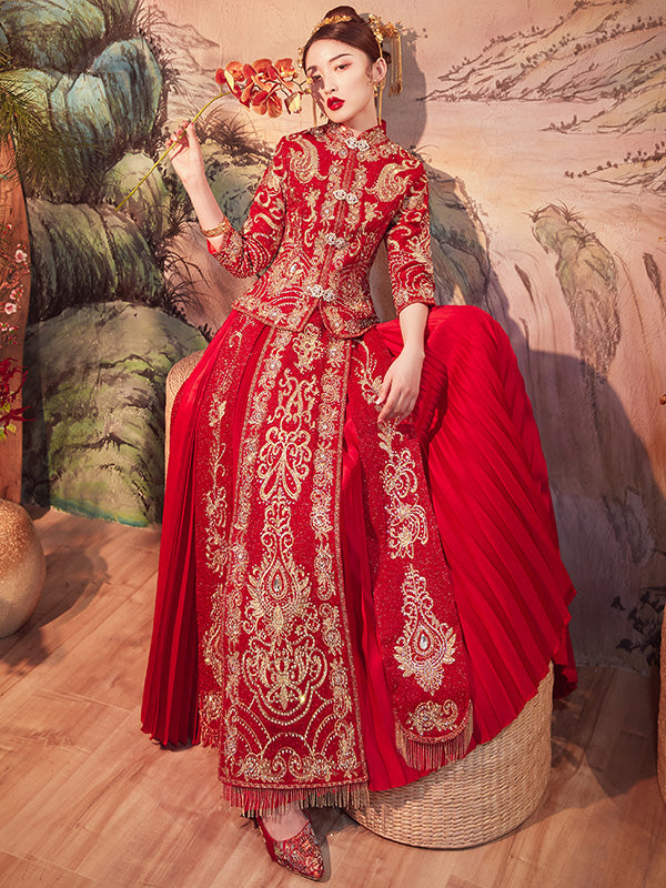 Beads Embroidered Wedding Bridal Qun Gua & Pleated Skirt