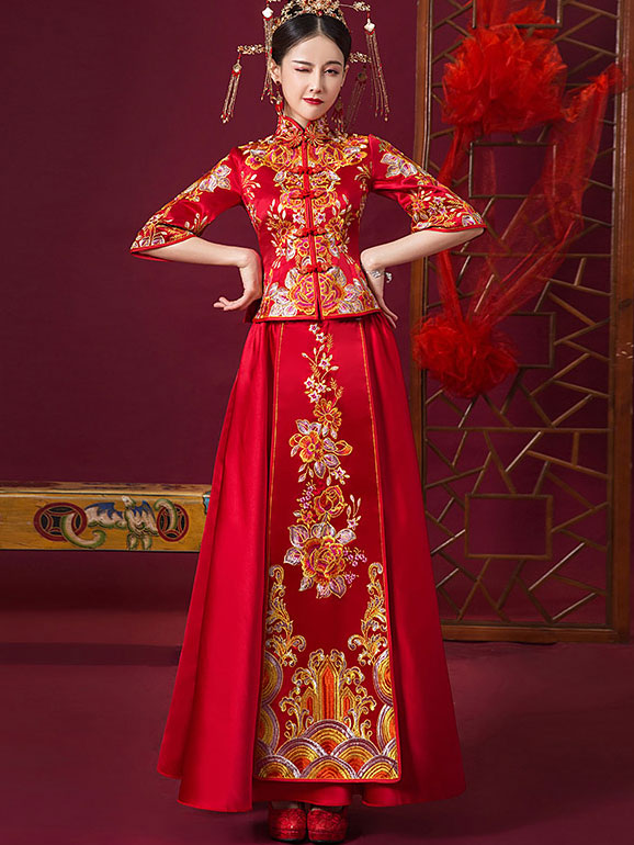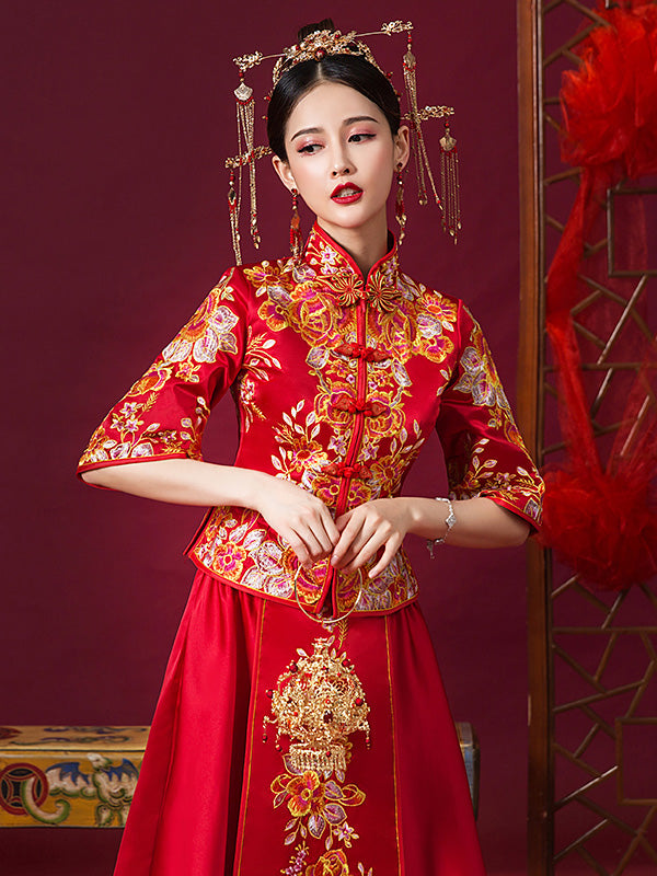 Red Embroidered Chinese Wedding Bridal Xiu He Fu