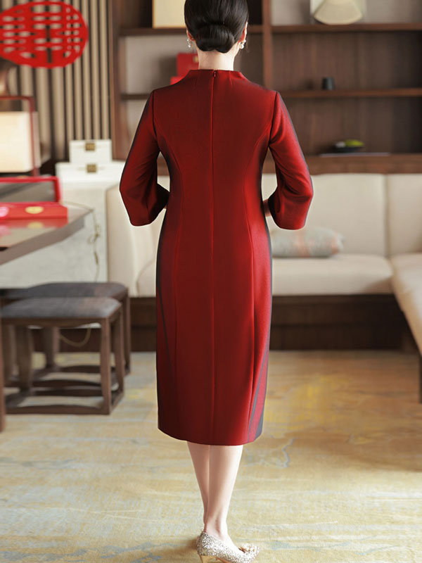 Red Bridal Mothers Winter V-neck Cheongsam Qi Pao Dress