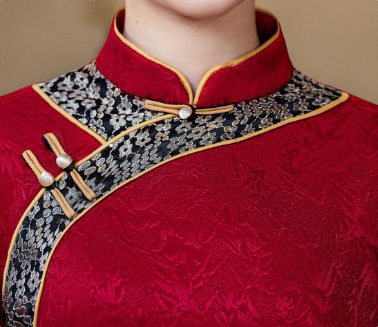 Black Red Woman Fleece Winter Cheongsam Blouse Top