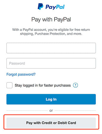 If you want to pay with your debit or credit card, after process onto the PayPal checkout page, please click the "Pay with Credit or Debit Card " button.