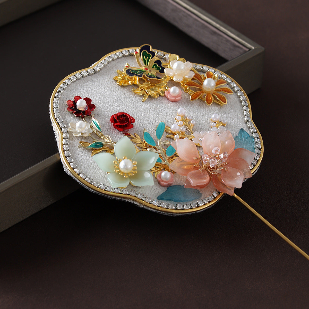 Material: This hand held fans is made of alloy, imitation pearls and rhinestone