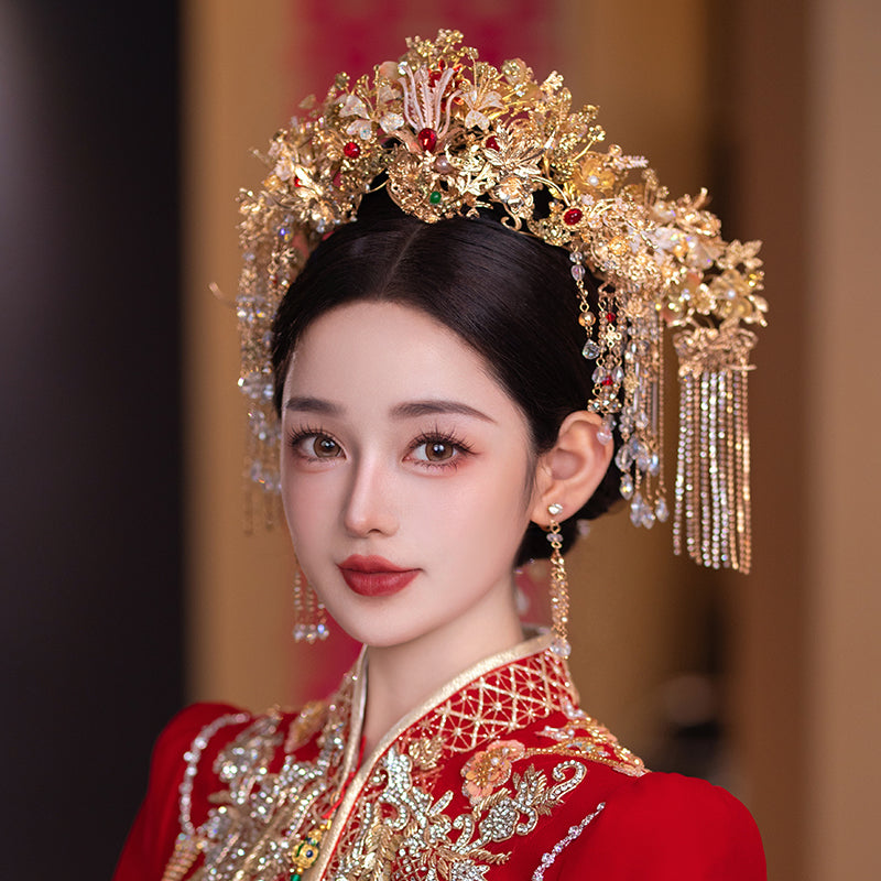 Covered in gold tone flowers, tuck this mid-size flower hair comb into a side bun